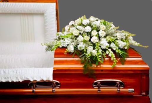 Show purity of love with a mix of all-white flowers that’s as gentle and pure as a cloud. Accented with a mix of greenery, fragrant white flowers create a lovely and traditional casket spray. Orders should be placed 72 hours in advance of pickup.